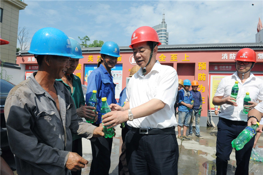 在碧桂園、悅湖灣、八都富都花園等施工現場,集團副總裁、一公司總經理呂達忠與在此區(qū)域執(zhí)行高溫工作的一線員工親切握手。呂副總代表集團向他們表示慰問和感謝,并送上防暑降溫慰問品,感謝他們?yōu)樽龊庙椖抗ぷ鞫晃费谉峥崾睿聭?zhàn)高溫,堅守崗位,辛勤付出。希望全體一線員工保重身體,在高溫天氣下,要科學規(guī)劃作業(yè)時間,切實做好防暑降溫工作,共同努力把項目建設好。