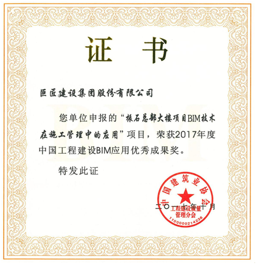 近日,由中國建筑業協會工程建設質量管理分會主辦的“中國工程建設BIM應用成果交流會”在浙江寧波召開。我集團申報的“振石總部大樓項目BIM技術在施工管理中的應用”榮獲2017年度中國工程建設BIM應用優秀成果獎。我集團于2015年組建BIM團隊,以振石總部大樓為試點項目,逐步推廣BIM技術應用。