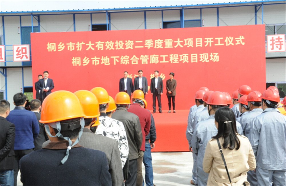 桐鄉市擴大有效投資二季度重大項目開工儀式分會場在我公司項目部舉行