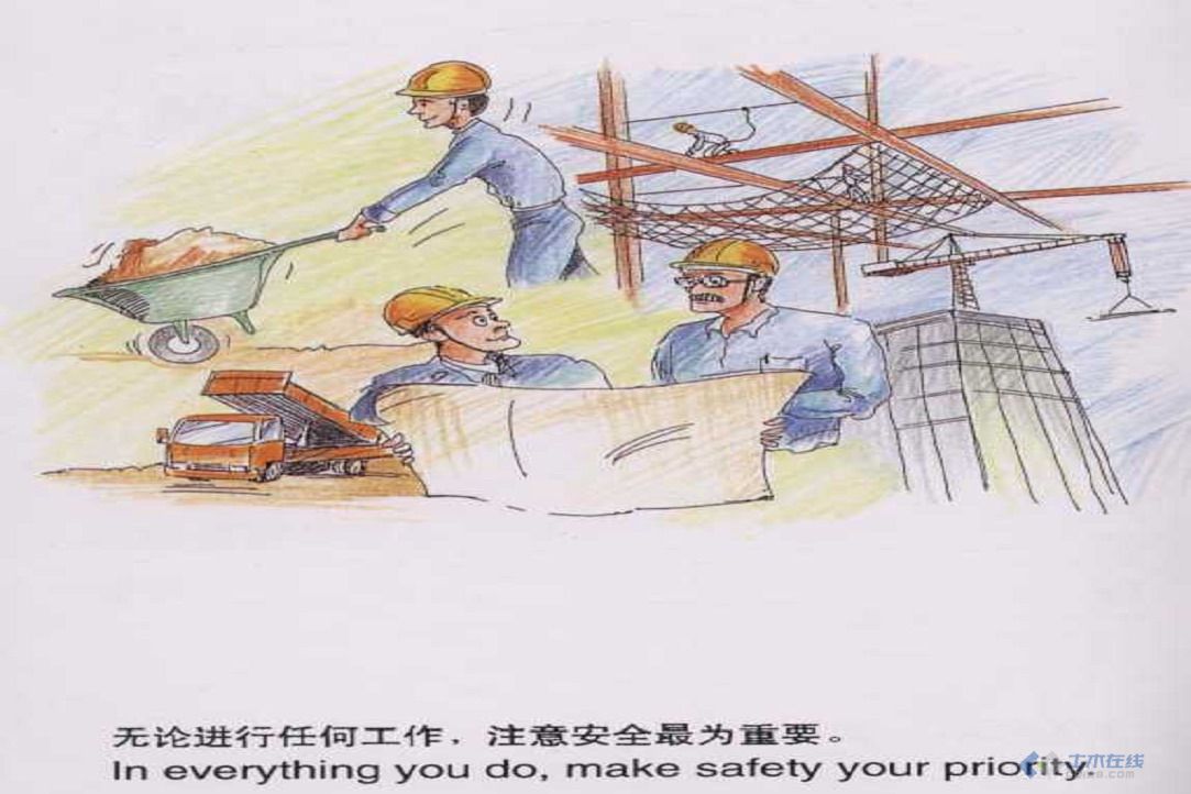 安全帽必須戴,防止墜物掉下來。安全帶是個寶,高空保險不能少。