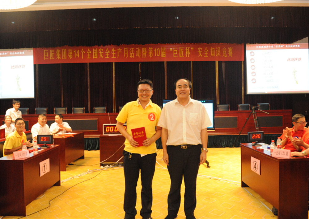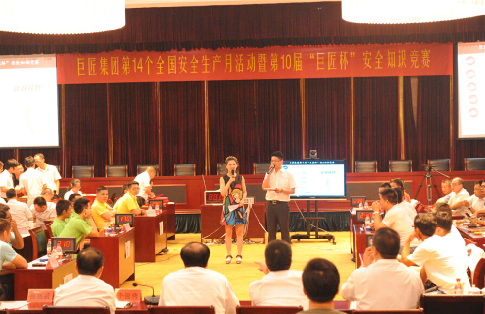 為全面貫徹落實全國第14個安全生產月活動的精神,全面提高廣大安全生產從業人員的安全知識,達到“以賽促學、以學促用、保證安全生產”目的,6月24日,集團開展了以“加強安全法治,保障安全生產”為主題的第10屆“巨匠杯”安全生產知識競賽。三個管理公司各派2支代表隊參加了比賽。集團全體行政員工和項目部員工觀摩比賽。