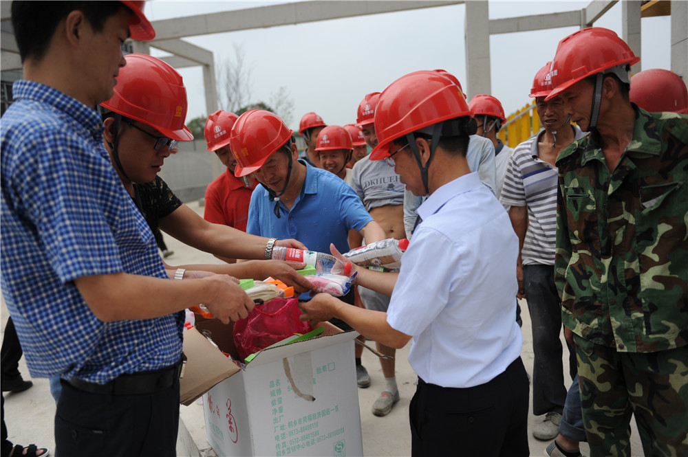 2018-08-01 市建設(shè)局領(lǐng)導(dǎo)赴我集團(tuán)承建的星都會(huì)小區(qū)工程開展高溫慰問 近來,持續(xù)高溫?zé)o疑是對(duì)建筑工地上一線工人的嚴(yán)峻“烤驗(yàn)”。7月31日上午,桐鄉(xiāng)市建設(shè)局黨委副書記許劍明、市建管處主任陸偉杰、市建管科副科長(zhǎng)鐘建國(guó)等領(lǐng)導(dǎo)赴我集團(tuán)承建的星都會(huì)小區(qū)工程建設(shè)施工現(xiàn)場(chǎng)開...